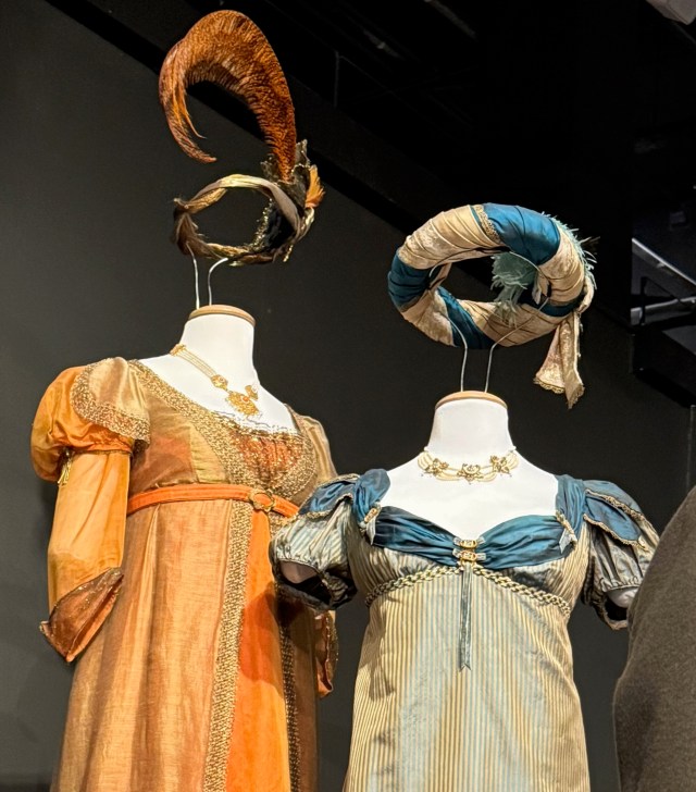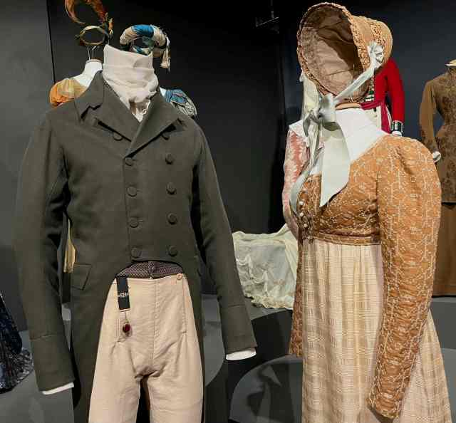 The exhibition is a very rare chance to see close up the costumes worn by some of Britain’s greatest actors over the past 60 years in films and TV period dramas such as the BBC’s hugely successful 1995 Pride and Prejudice adaptation.